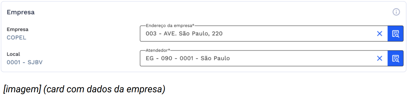 - Endereço da empresa: Selecione o endereço da empresa responsável;
