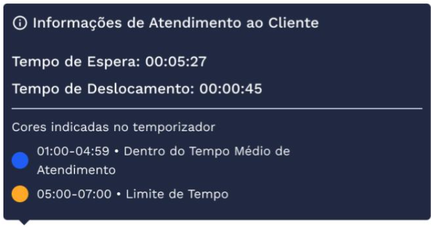- Indicação de cores: O timer ficará num tom laranja quando o tempo de atendimento exceder a meta para o posto.
